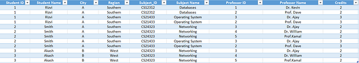 As shown above, the table is already in 1NF. In the above table, all other attributes depend on { Student_Id, Subject_Id, Professor_Id }, which is the composite primary key. But the followings depend on only a part of the composite primary key,