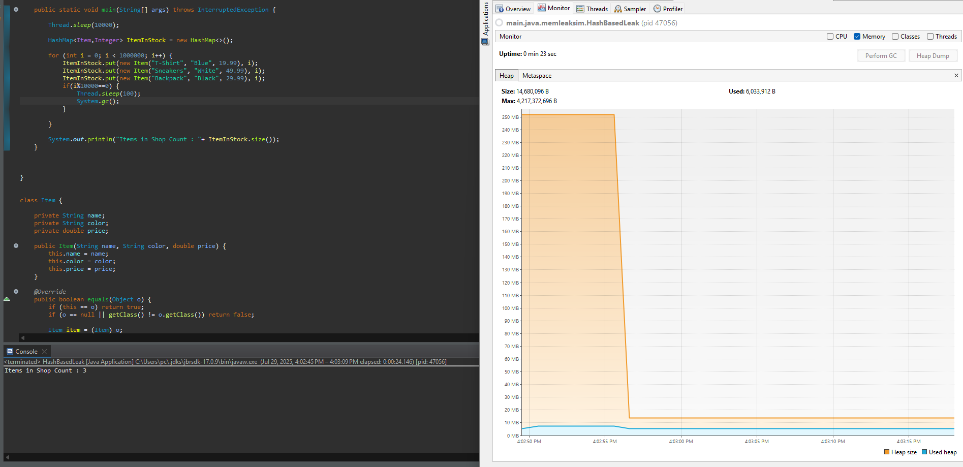 As we can see, there is a huge difference in memory and application results between the approaches. Hence, hash-based collections should be used carefully to prevent memory leaks as well as logical issues in the application.