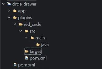 As the first step I have created a maven module named red_circle in circle_drawer/plugins/ directory. The structure of the module is shown below,
