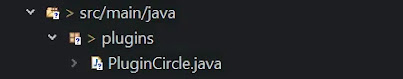As the next step I am going to implement the logic for the drawing circle. For this first I need to create a package named plugins in src/main/java of red_circle. Then I created a PluginCircle.java class in the plugins package. This class implements the Circle interface. After all, I just had to override the getName() and drawCircle() methods. Final class is shown below,