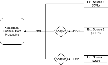 Let’s say we have an application that processes financial data. This application fetches financial transactions from external services as XML files, and the code is written to process these XML files.