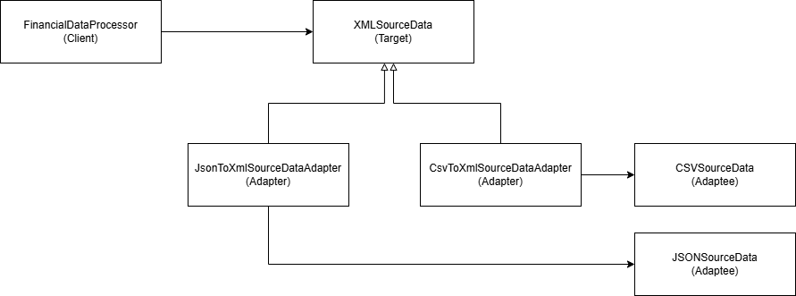 Simply put, our problem is how to deal with incompatible interfaces. Here it is between the XML reader from the application and data format provided format the source.